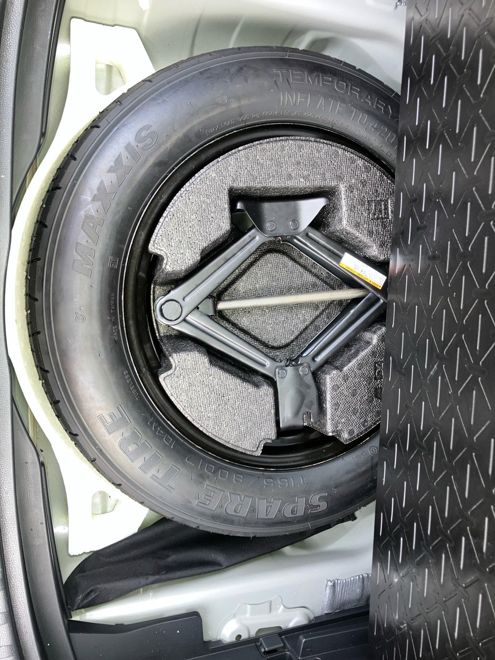 - Compact Spare Tire Mounted Inside Under Cargo