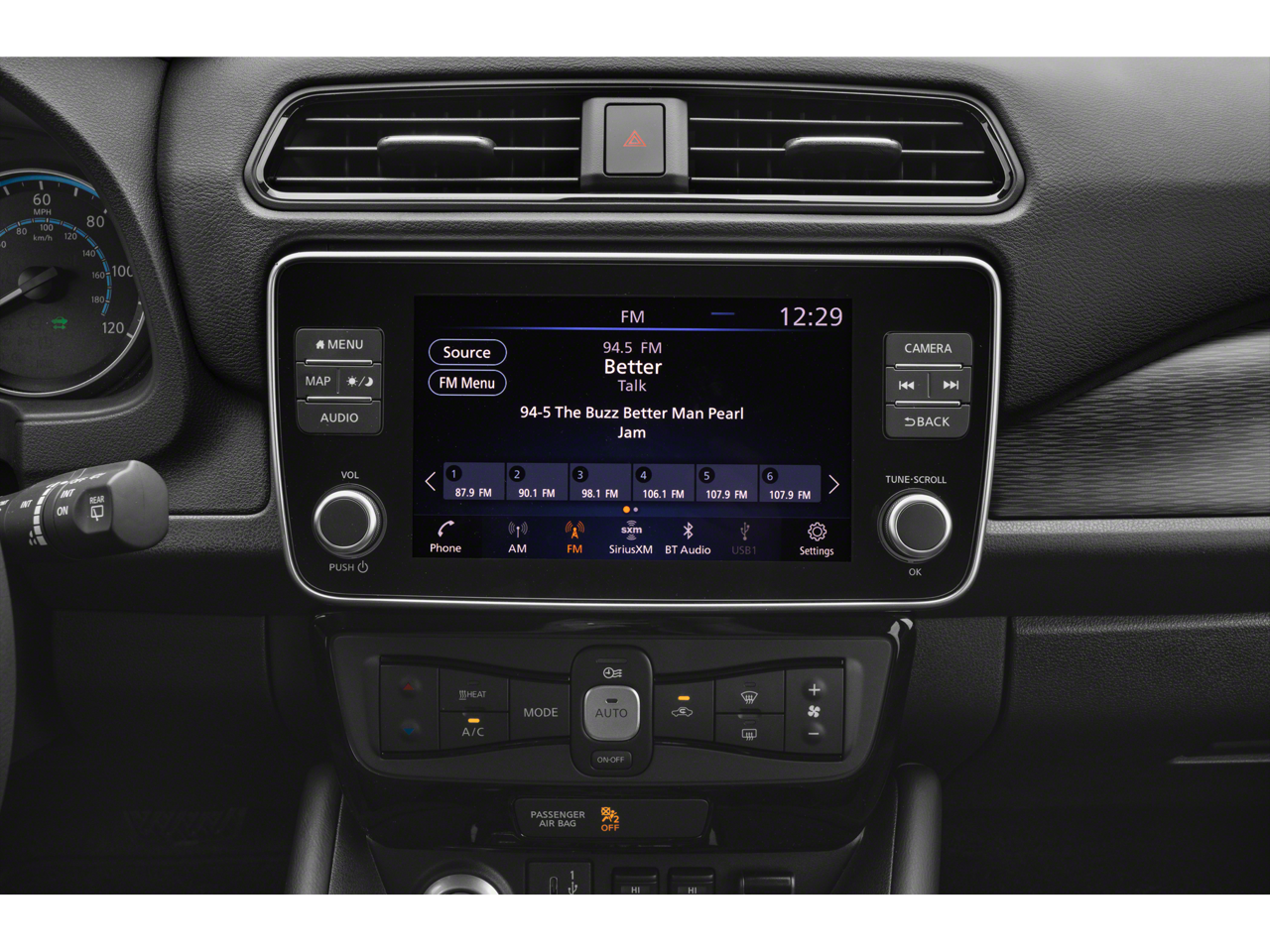 - Radio: NissanConnect EV w/Navigation/SiriusXM -inc: 8" color display w/multi-touch control, Nissan door to door navigation w/3D building graphics and satellite imagery, connected navigation features including online POI search, online premium traffic information, Over-the-Air (OTA) updates for head unit firmware and navigation map software via a Wi-Fi WPA2 connection, Apple CarPlay, Android Auto, HD Radio technology, SiriusXM radio w/advanced audio features, SiriusXM Traffic, SiriusXM Travel Link (weather, movie listings, stock info, sports and parking), USB connection port for iPod interface and other compatible devices, Bluetooth® hands-free phone system, streaming audio via Bluetooth®, hands-free text messaging assistant and 6 speakers